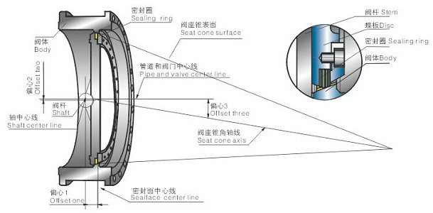 氣動(dòng)三偏心蝶閥結(jié)構(gòu)原理: