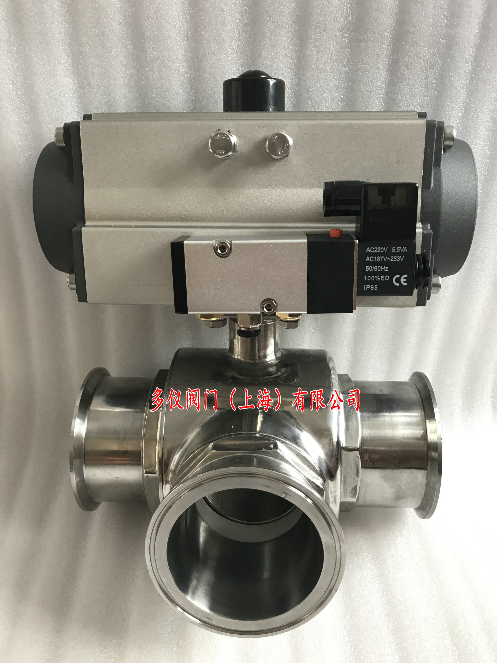 衛(wèi)生級氣動三通球閥氣動執(zhí)行器有雙作用和單作用,可配氣動閥門的附件有換向電磁閥、限位開關(guān)、空氣過濾減壓閥、電氣定位器、手輪裝置等。Q684(5)F-16C型號含義說明:Q球閥,6氣動,8卡箍,4 L型,5 T型,F(xiàn)密封四氟,16壓力16公斤,P閥體材質(zhì)為不銹鋼。(參閱 球閥型號編制說明)