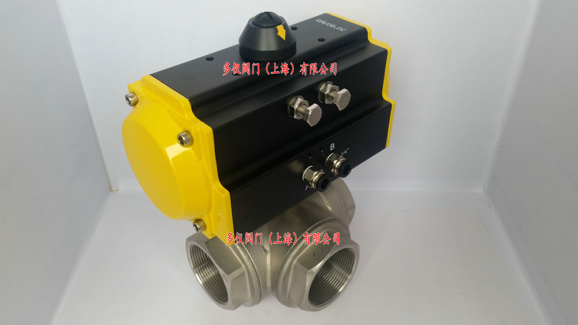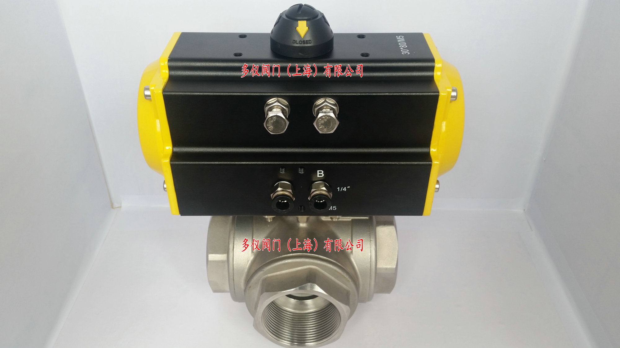 內(nèi)螺紋氣動(dòng)三通球閥具有一閥多用的特點(diǎn),任一通口可用作入口而無泄漏,三通既可制成L型通口,也可制成T型通口。且密封性能好,通常采用四面閥座材料聚四氟乙烯彈性變形實(shí)現(xiàn)無泄漏密封。裝配上閥門定位器,還可以根據(jù)相關(guān)信號(hào),調(diào)節(jié)閥門的開度大小,達(dá)到對(duì)管道介質(zhì)的流量控制。